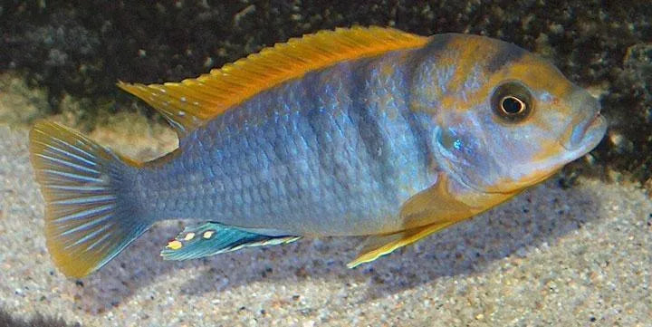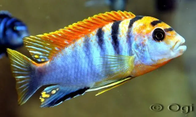 The coloration of this fish differs depending on its mood. Dorsal fins also range in colour from yellow to orange. The colors of the dominant male can be quite exquisite, including orange blaze and creamy lilac coloring.