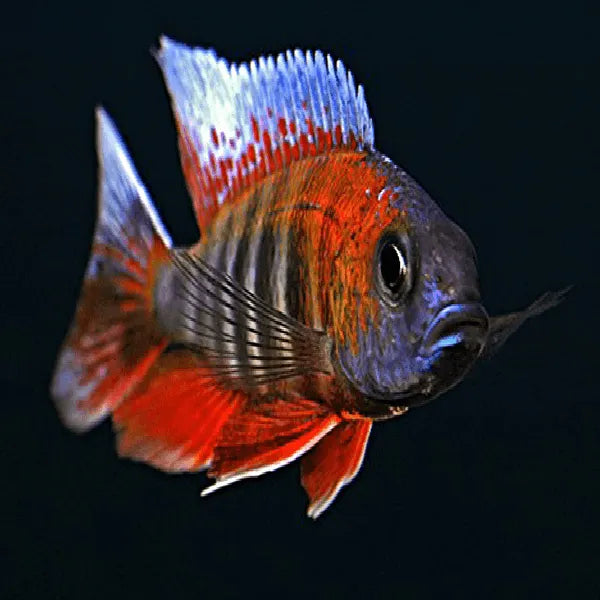 The temperature should be between 75-81°F (24-27°C). Unlike most other Lake Malawi Cichlids, Peacocks are relatively peaceful fish. They will set-up territories and defend them, but otherwise are not aggressive. Peacock cichlids can be combined with each other, catfish, and other peaceful, mid-sized fish in a community tank. Peacocks are omnivorous and can easily be fed in an aquarium on live or frozen foods as: bloodworms, mosquito larvae, crustaceans, snails, and Tubifex.