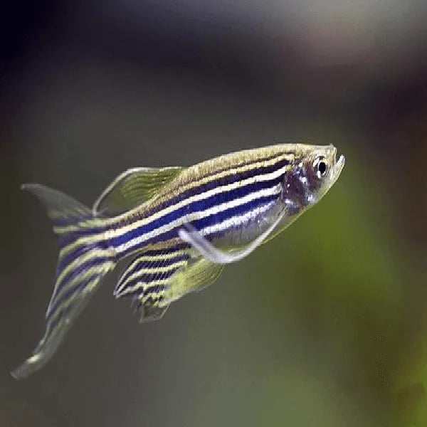 Extremely popular community fish, native to India. Quite hardy, suitable for both heated and unheated aquaria. Very lively and playful, best kept in a school of at least 4-6 fish. Zebra Danios usually grow to about 5cm.