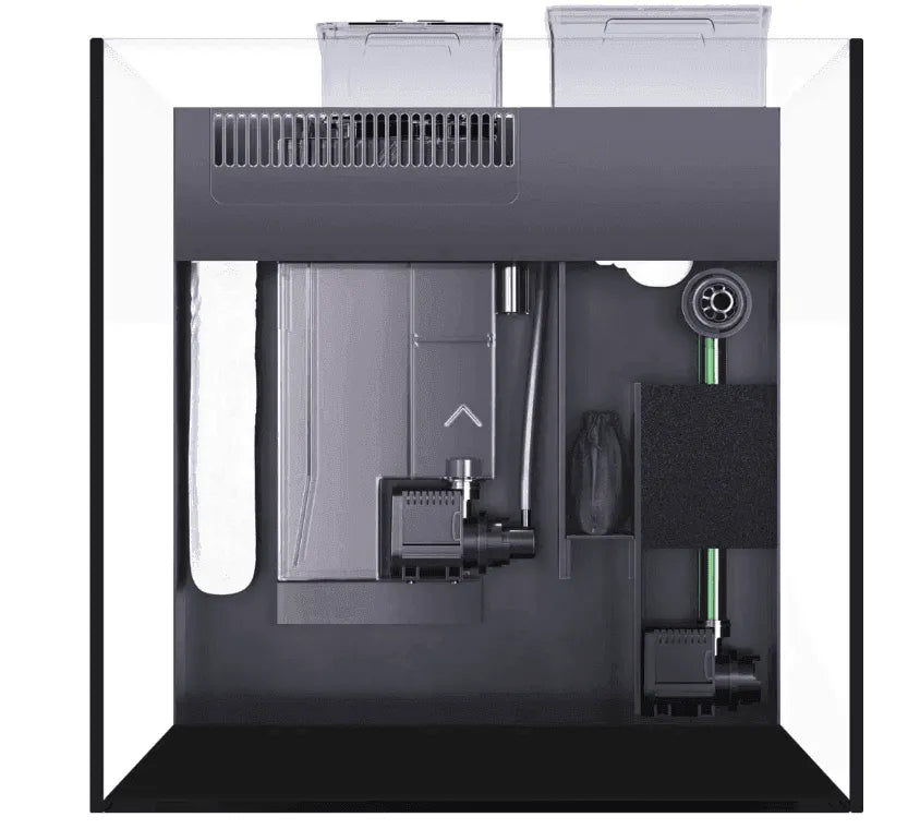 - Rear sump - The complete filtration system is hidden in the rear sump that is topped by a rotatable screen for easy access.