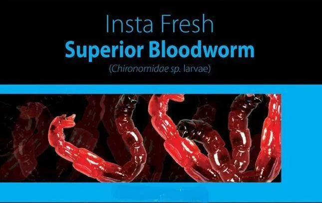 Most Bloodworm sold these days can be 60% or more water. These fresh sealed Bloodworms are 97% Bloodworm and eliminate the need to be frozen so can easily be freighted.