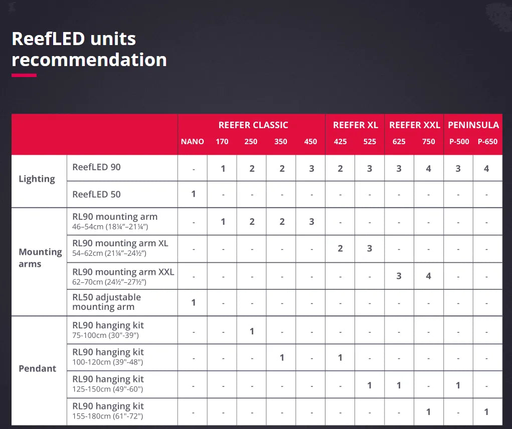 ReefLED 90 Pendant for multiple ReefLED units are available with either black or white trim for an elegant look above regular and peninsula tanks.