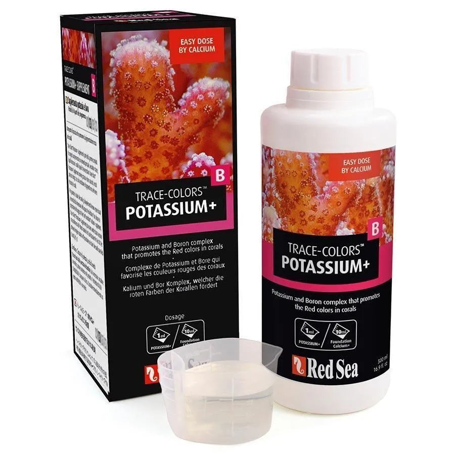 Reef Color B: A complex of Potassium and Boron. Potassium plays an essential role in the transportation of coral nutrients within the soft tissue (including the nutrients provided by the Zooxanthellae). Potassium and Boron significantly affect the alkalinity of a coral’s soft tissue and the formation of aragonite in its skeleton. Potassium is related to the red chromo-proteins.