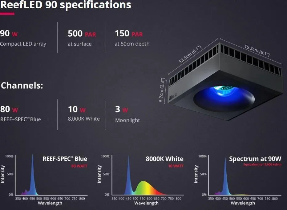 - REEF-SPEC® light output for optimal coral growth and coloration