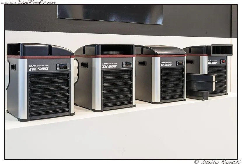TK 500 Aquarium chiller/500 litre @ 25°C Efficient Cooling Technology The exclusive use of high-quality compressors and of the titanium coaxial heat exchanger, ensures high performance and low energy consumption.