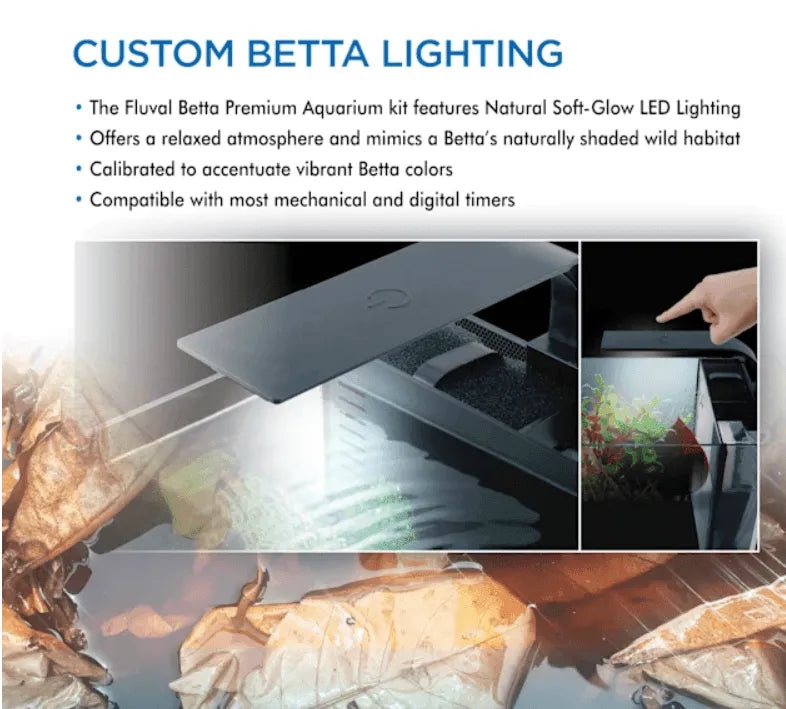 Create a healthy, beautifully lit environment for your fish with the Fluval Betta Premium Aquarium Kit — the ultimate combination of function, form, and simplicity.