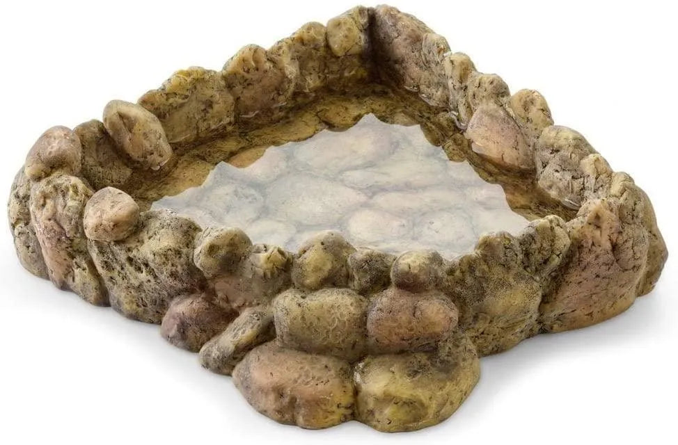 The presence of clean and fresh water is important for the proper care and maintenance of captive reptiles and amphibians. The Exo Terra Pebble Water Dish has a very realistic pebble rock finish which contributes to the natural appearance of your terrarium scenery.