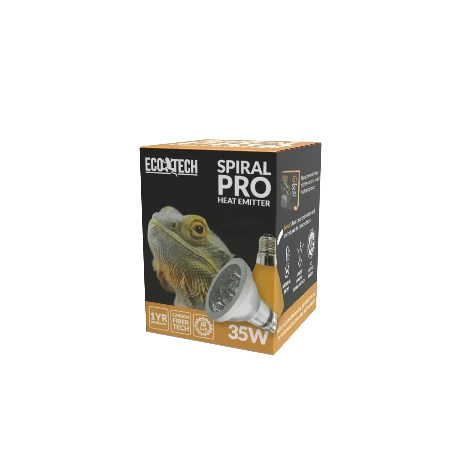 The EcoTech Spiral Pro Heat Emitter 35w uses new technology to produce effective heat sources of Infra-Red with virtually no amount of visible light. These are 'Infra-Red-A' and 'Infra-Red-B'.