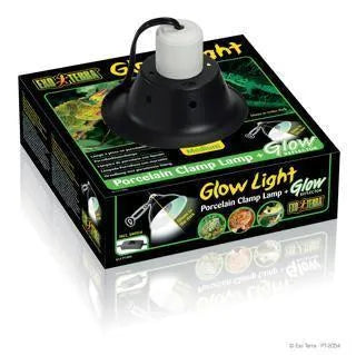The Exo Terra Glow Light gives you the versatility of placing heat and/or light sources on your terrarium where needed. The device is sturdily constructed, with a metal reflector, heat resistant ceramic socket, and a spring-loaded swivel clamp. It can be easily turned off and on by the switch, mounted on the extra long power cord.