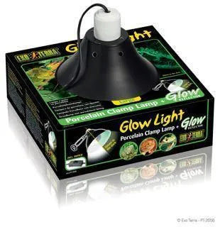 The Exo Terra Glow Light gives you the versatility of placing heat and/or light sources on your terrarium where needed. The device is sturdily constructed, with a metal reflector, heat resistant ceramic socket, and a spring-loaded swivel clamp. It can be easily turned off and on by the switch, mounted on the extra long power cord.