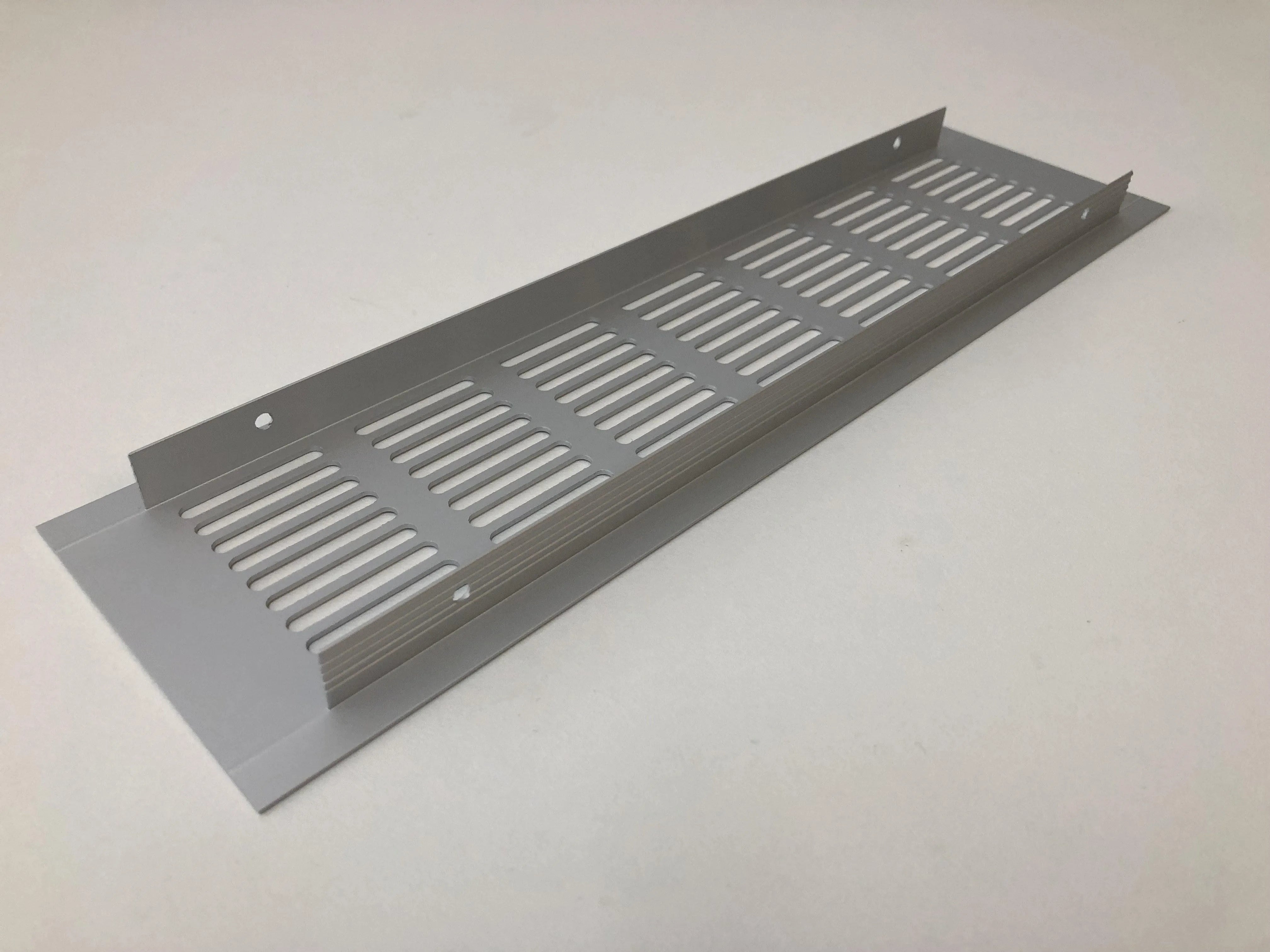 Aluminium rectangle air vents for reptile enclosures. These are a new more stylish looking air vents generally used in the back of reptile cages. They are 300mm long and 80 mm high.