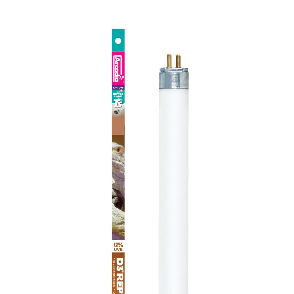 A revolutionary new range of high performance T5 reptile lamps from Arcadia. Offering a significant increase in both visible light and UV output compared with T8 lamps of similar length. High output T5 Full spectrum colour of light Plus UVB at 12% and UVA at 30% T5 diameter and will fit all high output T5 control systems,