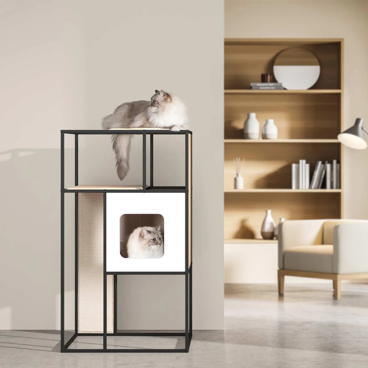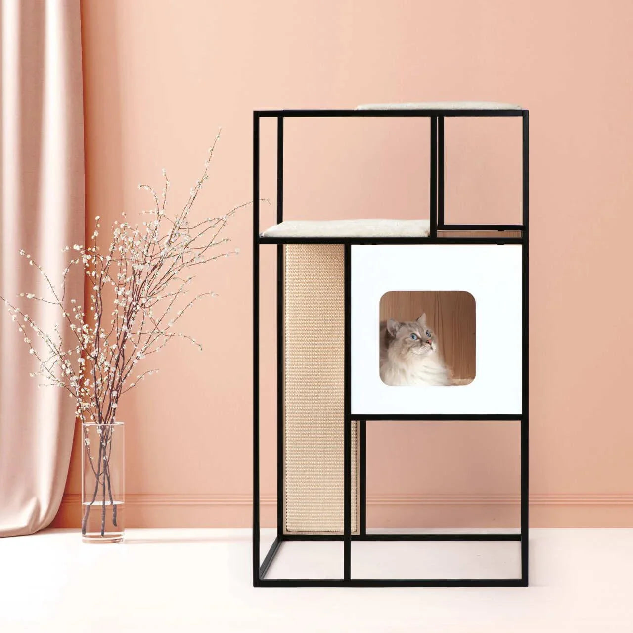 The Catit Vesper PATIO stands out as a comfortable cat tree that effortlessly looks fresh and contemporary in your interior. Vesper PATIO cat furniture gets its Italian aesthetic from the sturdy metal frame, which elegantly encases the vertical cat scratcher and frames the den with beautiful wood laminate panels.