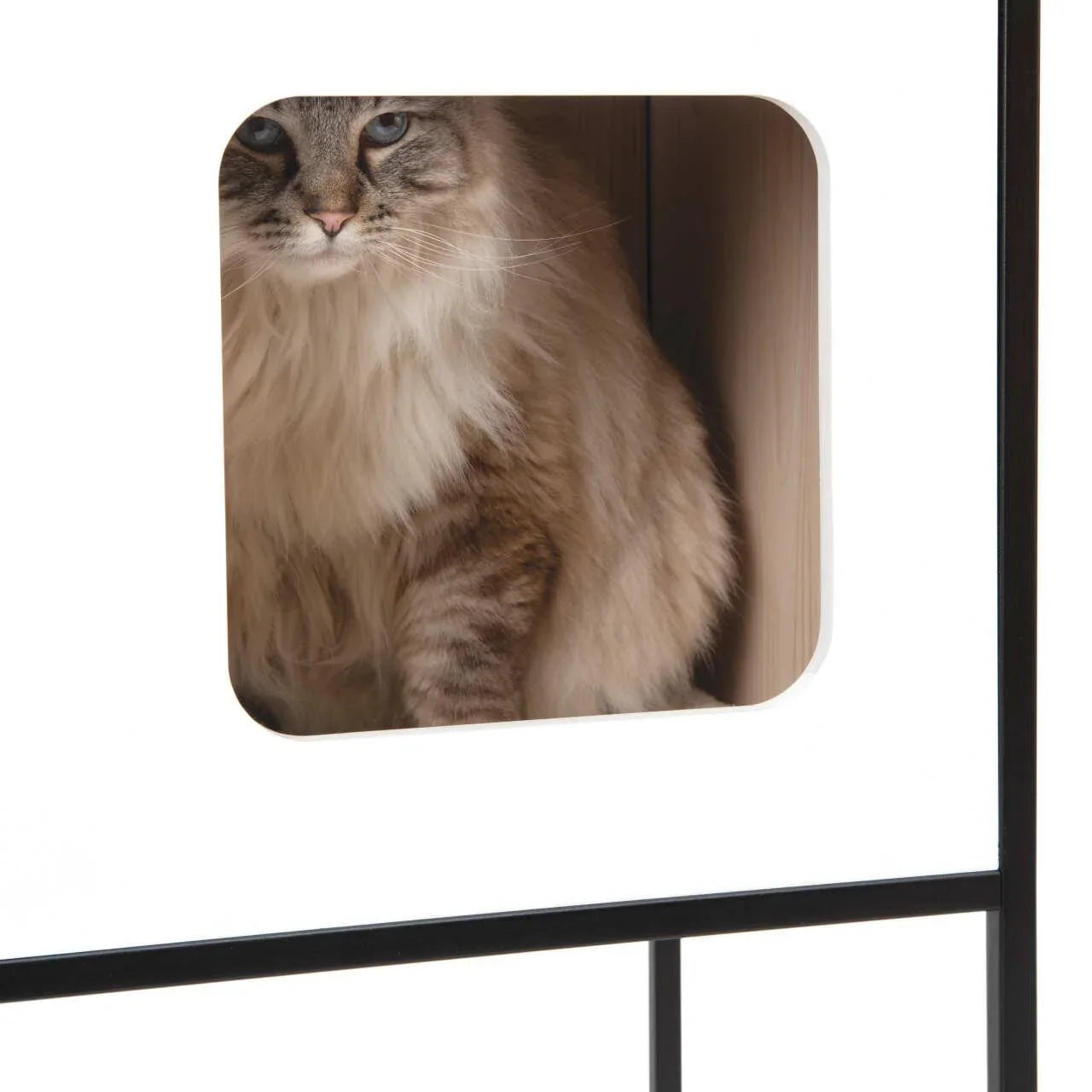 With its chic metal framework and warm wood laminate finish, the Catit Vesper PATIO is a truly stylish cat tree that is invaluable to your cat’s comfort. Securely suspended within sits a cozy cat hideaway. Your feline will love taking long, relaxing cat naps on the soft memory foam cushion, lounging and snoozing while hidden in plain sight. The furniture’s side panel has an integrated vertical scratching mat made from natural sisal for your cat to comfortably dig their claws into.