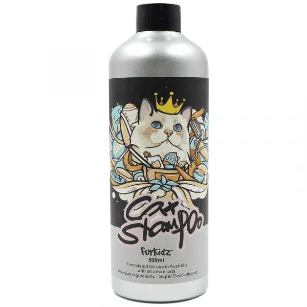 Furkidz specially formulated cat shampoo is formulated for use in Australia for all types of domestic cats. Your cat will be shining clean and smell adorable. Cats are renowned for hating a bath, not anymore! This formula is designed for regular every day use with a special formula to deeply clean the skin and coat