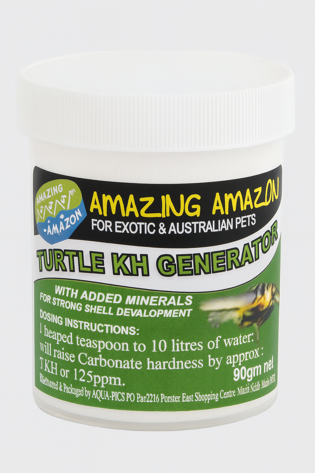 Designed for small enclosures, this 90 g pack is easy to dose and store. When used as directed, the powder effectively raises KH and provides important mineral enrichment. It's ideal for captive Australian turtles and axolotls.