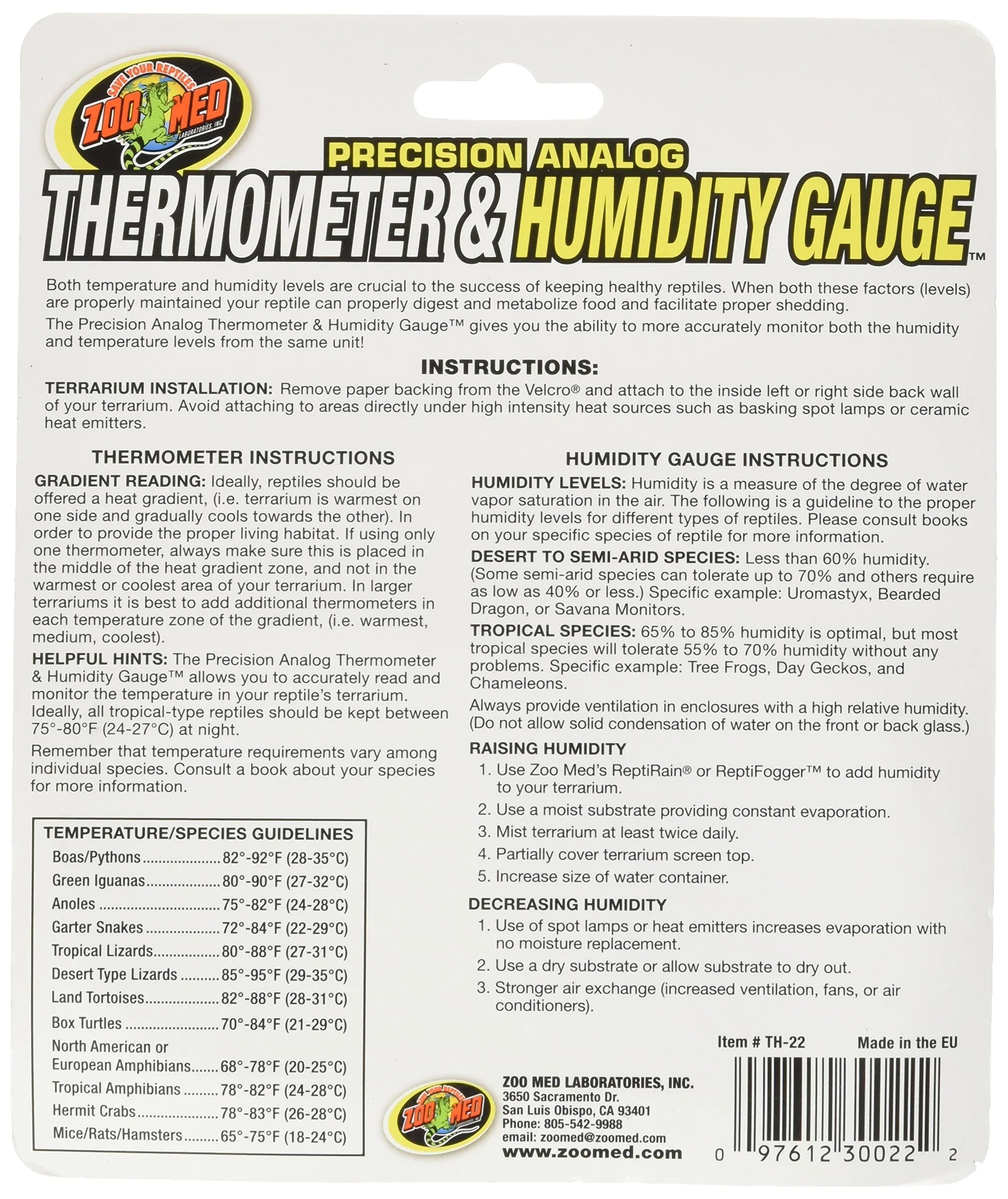 Ensure your pet’s habitat stays comfortable and safe with the Zoo Med Dual Thermometer & Humidity Gauge — a must-have for every reptile enthusiast.