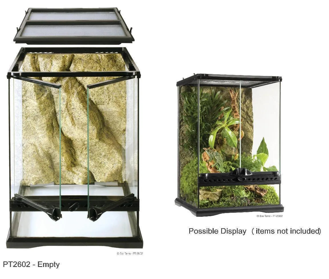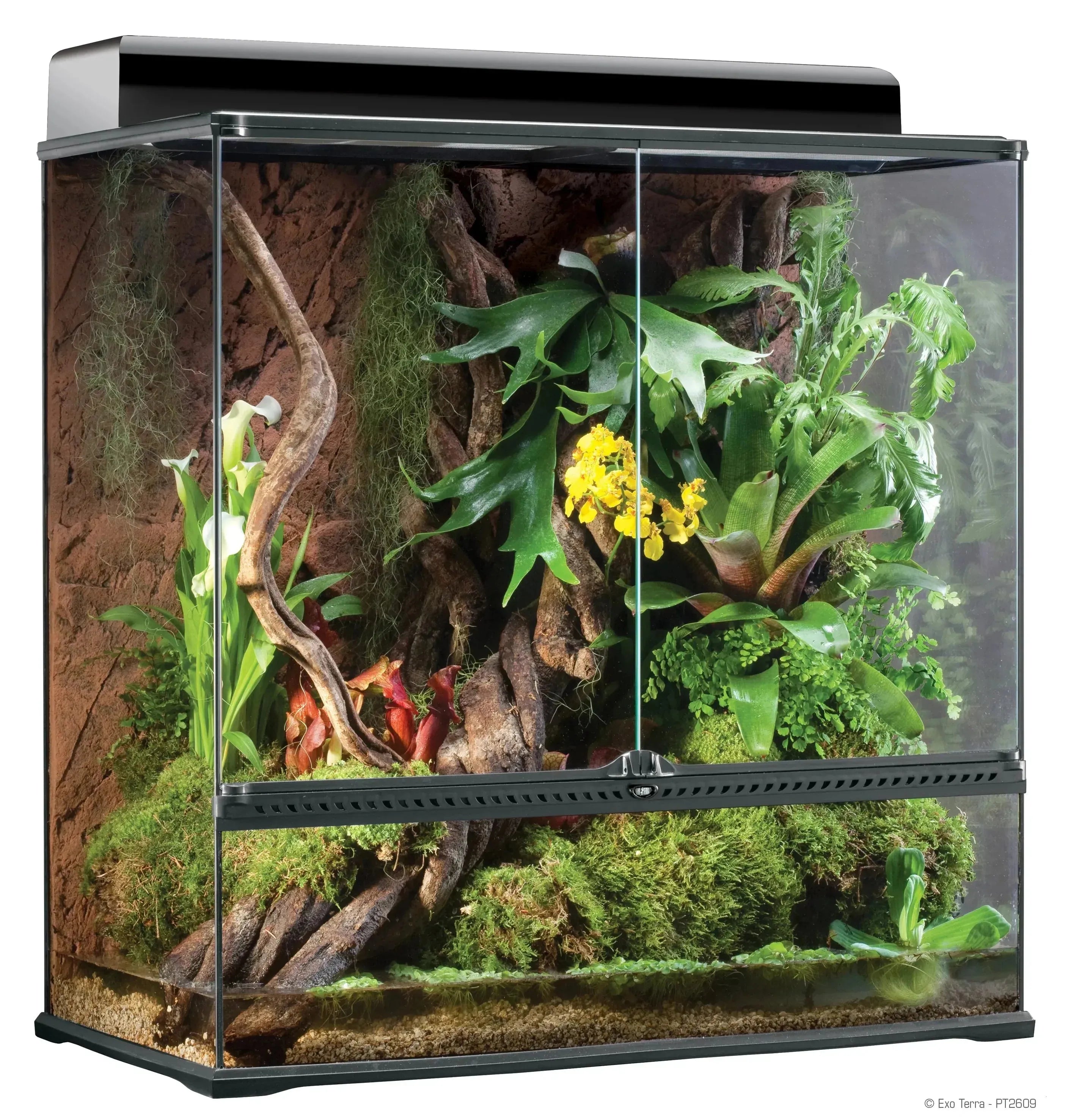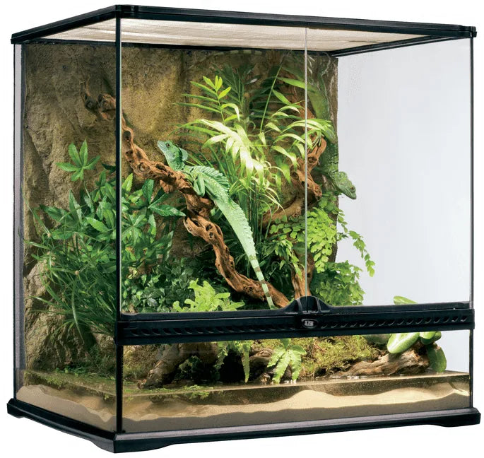 The Exo Terra Glass Terrarium is the ideal reptile or amphibian housing designed by European herpetologists. The front opening doors allow easy access for maintenance and feeding. A specially designed lock will prevent escape and the doors can be opened separately.