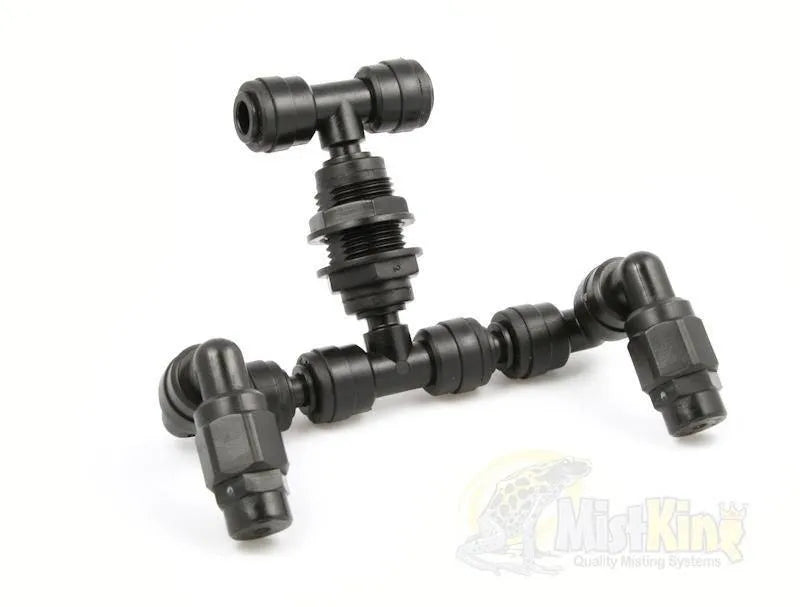 The new and improved MistKing Value Assemblies are here!!! Best Value on the market! Full range of motion! 100% black. Equipped with our exclusive black low flow, check valved nozzles. Compatible with all our other misting assemblies. Mix and match style and value.Double the value with this double headed misting assembly. Ideal for smaller tanks where it's not worth it to put 2 nozzles next to each other.
