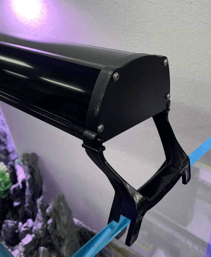 These stylish looking light reflectors are great for a multitude of purposes including aquarium and reptile use (Globe will need to be changed for reptiles with a UVB). Can be sat on top of bracing of fish tank and also comes with mounting brackets that can be clipped over the edge of the tank to slightly raise it up. Takes standard 120cm 36/40w T8 globes