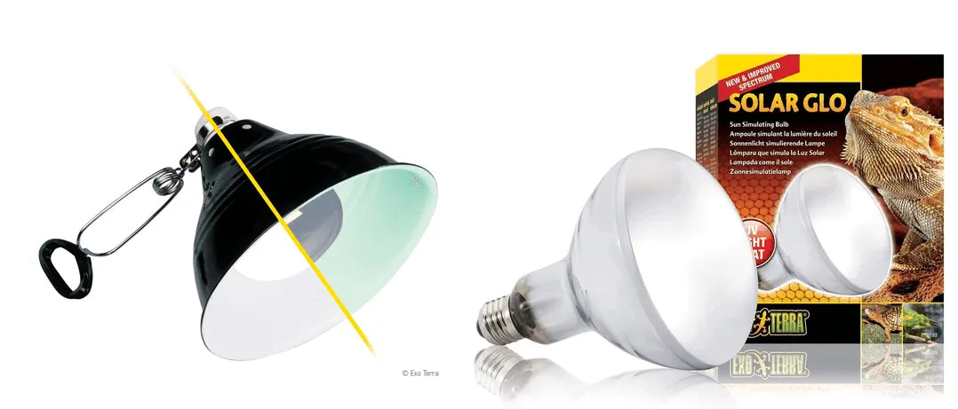 It provides the benefits of natural sunlight and helps to prevent metabolic bone disease. Increased UVB penetration distance (+30 cm / 12”) The Exo Terra Solar Glo is a self-ballasted mercury vapour lamp, which fits into a standard ceramic socket (No ballast needed).