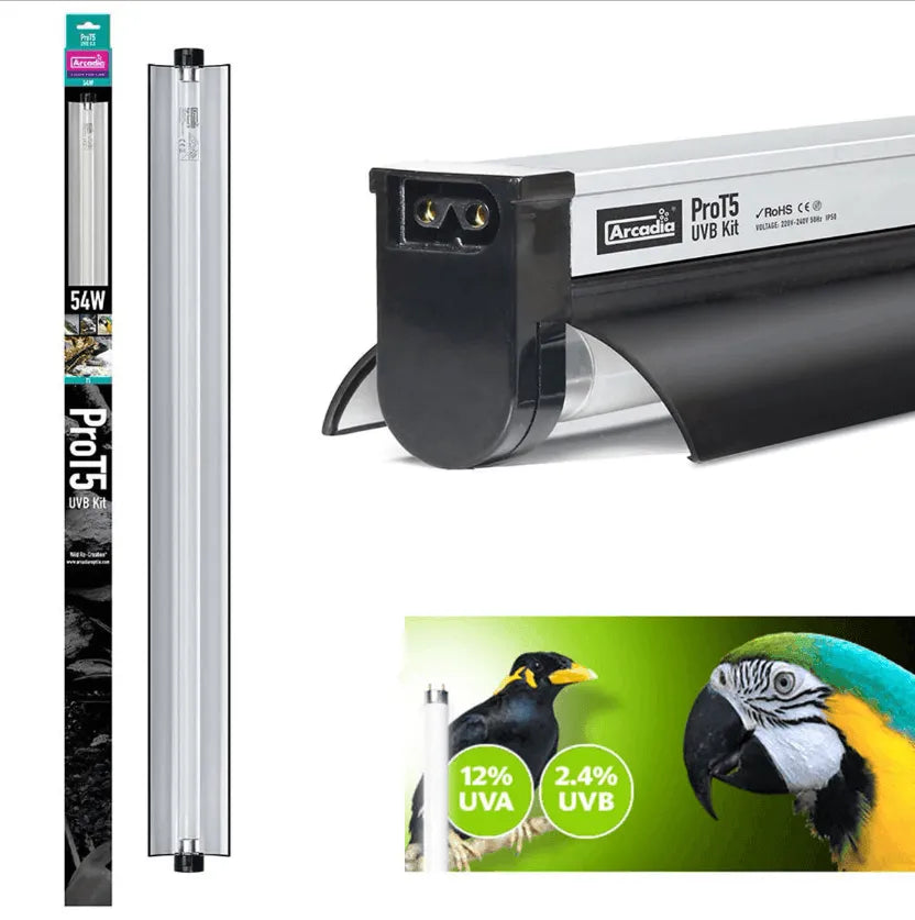 The Arcadia Pro T5 UVB Kit arrives complete with high quality electronics, a highly effective but removable reflector and a 2.4% T5 UVB Bird Lamp.