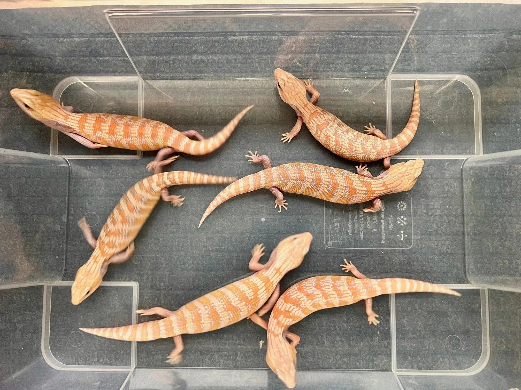 This rare species of lizards, the Albino Blue Tongue Lizards, boasts a unique albino coloring and distinctive blue tongue. These features make them a sought-after addition to any reptile collection or a fascinating pet for enthusiasts. Only available in limited quantities, get yours now!