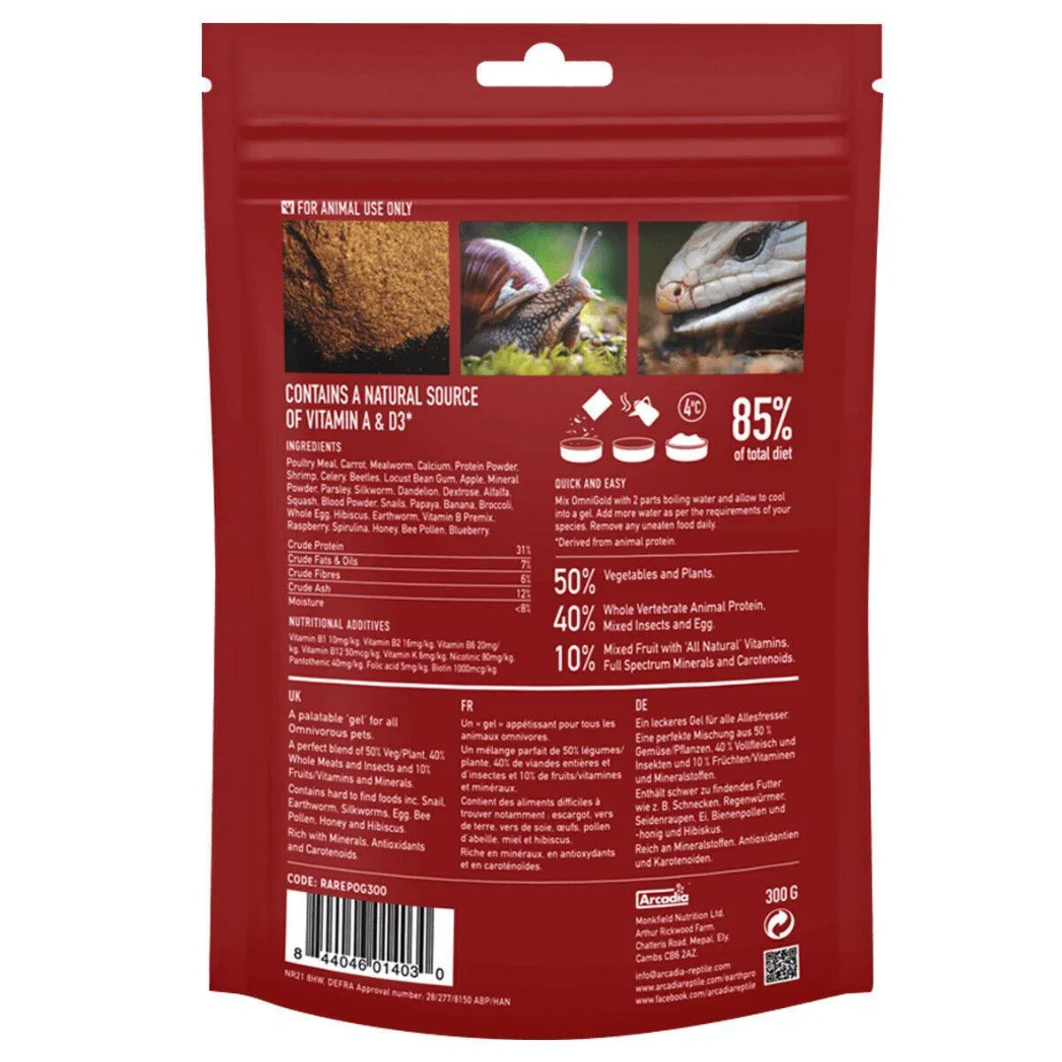 EarthPro-OmniGold contains natural ingredients that form large parts of the wild diet including snails, Earthworms, Insects, bee pollen and egg that have, to date, been hard to source. If you want to feed your animals the very best in a safe and measured way then EarthPro-OmniGold really is the answer that you have been looking for.