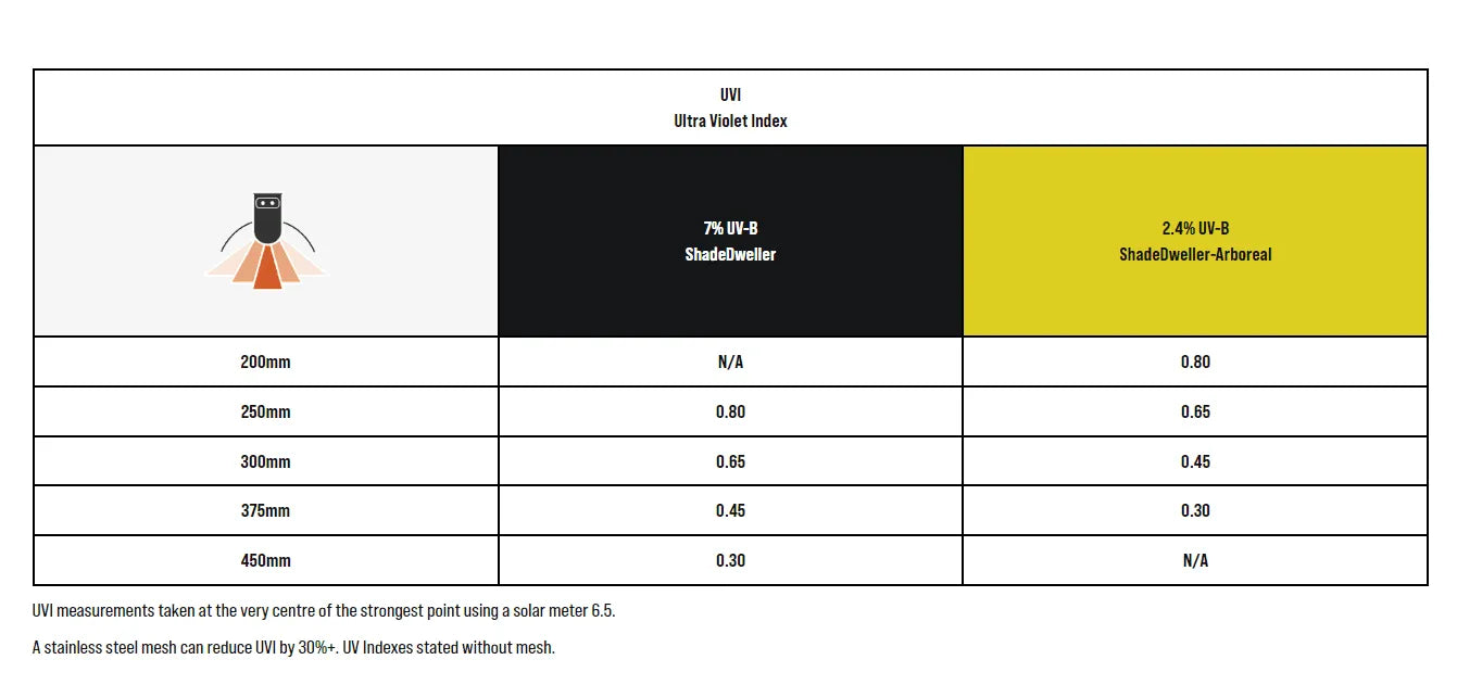 Shade Dweller Pro-Arboreal has been designed to be safe and effective to use over standard meshed topped vivarium’s and inside other vivarium’s where planting/decoration is provided to a close distance to the lamp.