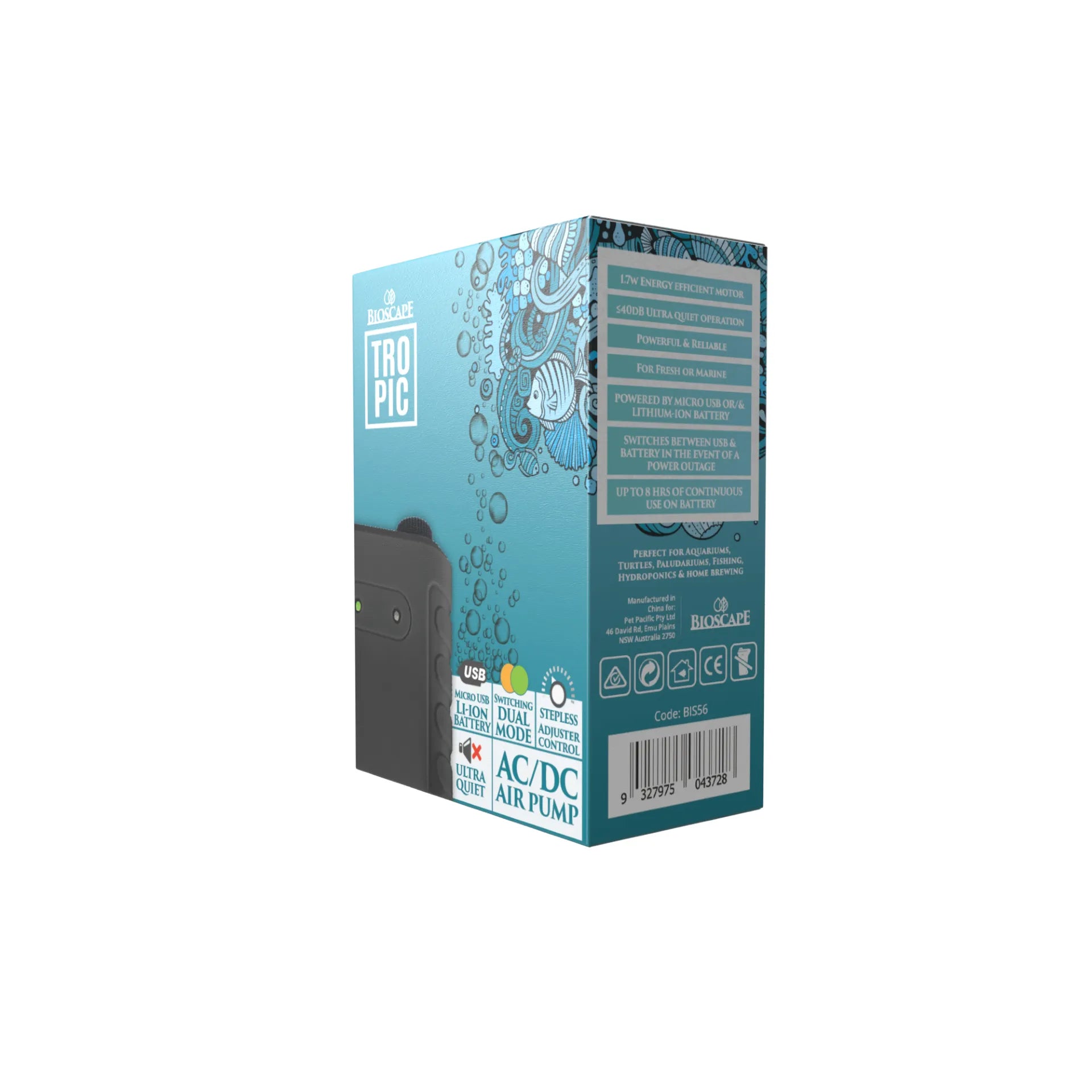 Experience the ultimate convenience and peace of mind with the Bioscape Battery and Powered Aquarium Airpump. With the powerful Bioscape Tropic A/C D/C Air Pump, you can ensure constant oxygen flow for your aquatic creatures, even during power outages. Trust in our expert engineering for a reliable and efficient aquarium air pump.