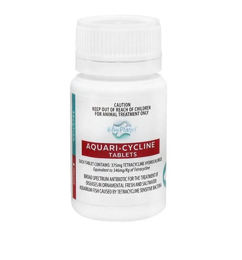 Aquari-Cycline is a broad spectrum Antibiotic in tablet form effective against a wide range of bacterial infections in fresh and saltwater aquariums. Aquari-Cycline tablets are formulated specifically for aquarium use with inert carriers which dissolve rapidly upon contact with water. The active constituent of Aquari-Cycline is "Tetracycline Hydrochloride".