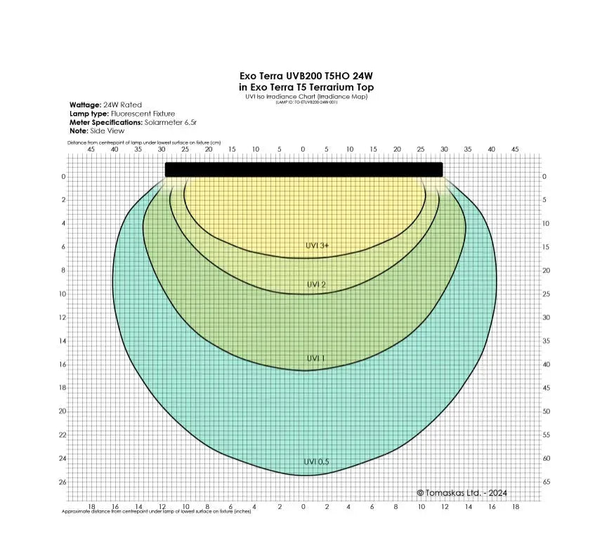 Exo Terra’s exceptional T5 lamps are crafted in Germany to the highest quality standard, ensuring a prolonged UV output of 12+ months for lasting performance. With its intense output of UVA and UVB rays – combined with a well-balanced visible light spectrum – the Exo Terra® Reptile UVB200 T5 Very High Output Bulb is specifically designed to meet the needs of reptiles that bask occasionally or in partial sunlight in the Mesophotic Zone. The intensity of the emissions varies depending on the distance from the basking area.