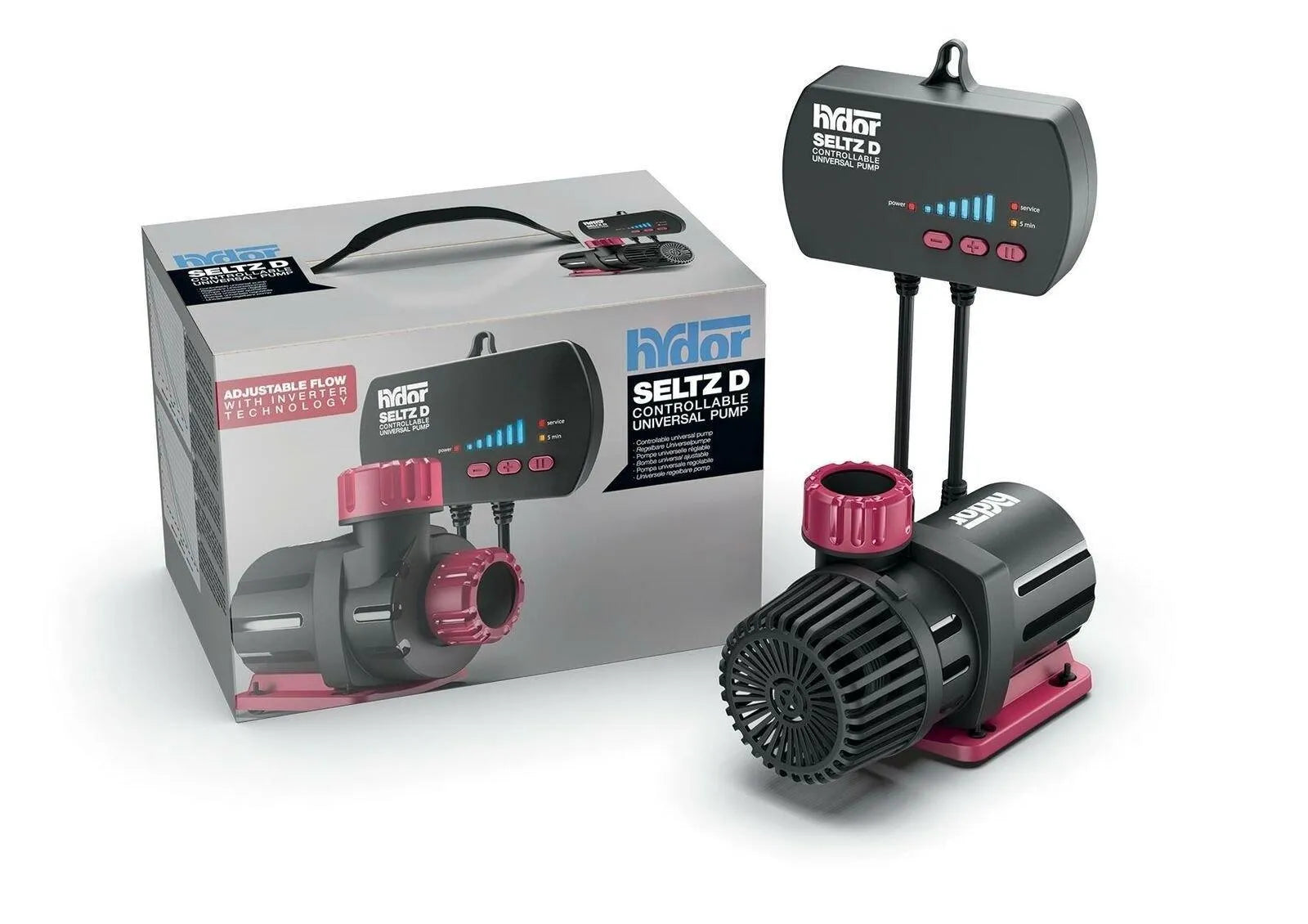 The Hydor Seltz D 9000 LPH Controllable Universal Pump is a high-performance, multipurpose, electronic, centrifugal pump with controllable flow thanks to electronic inverter technology. Ideal for sumps, refugiums, biological filters and in general, to circulate fresh and salt water. Supplied with pre-filter and pipe holder connectors for non-submerged use.