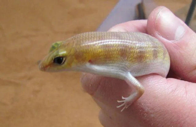 These Sand Swimmers are found in the states of New South Wales, Northern Territory, Queensland, South Australia, Victoria, and Western Australia. They range from cream to pink, yellow to orange, and some are dark brown. These very attractive skinks have distinctive narrow, dark banding on the body and tail. Sand Swimmers are nocturnal skinks, but if glimpsed during the day, their very glossy scales almost give them a wet and shiny look. Sand Swimmers can be found burrowing through the spinifex sand plains and in shrubland and desert woodland habitats. They can also be found in sandy creek beds, but are most commonly found on sand country.