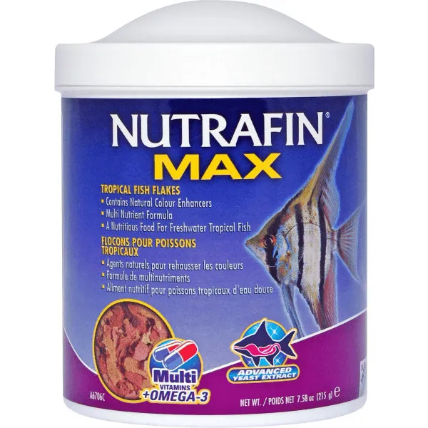 Nutrafin Max Tropical Fish Flakes is a highly palatable and nutritious multi-nutrient fish food that provides the ultimate in tropical fish nutrition. Naturally coloured by its ingredients, the nourishing food contains multi-vitamins, natural colour enhancers, and Advanced Yeast Extract, which helps improve digestion and allows optimal nutrient absorption. The fish food container has a specially-designed lid that serves as a convenient dispenser.